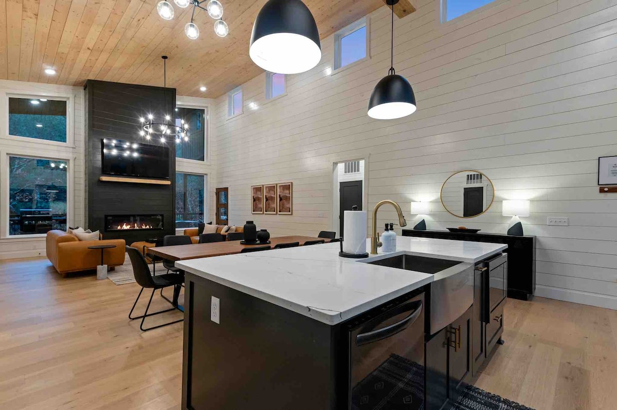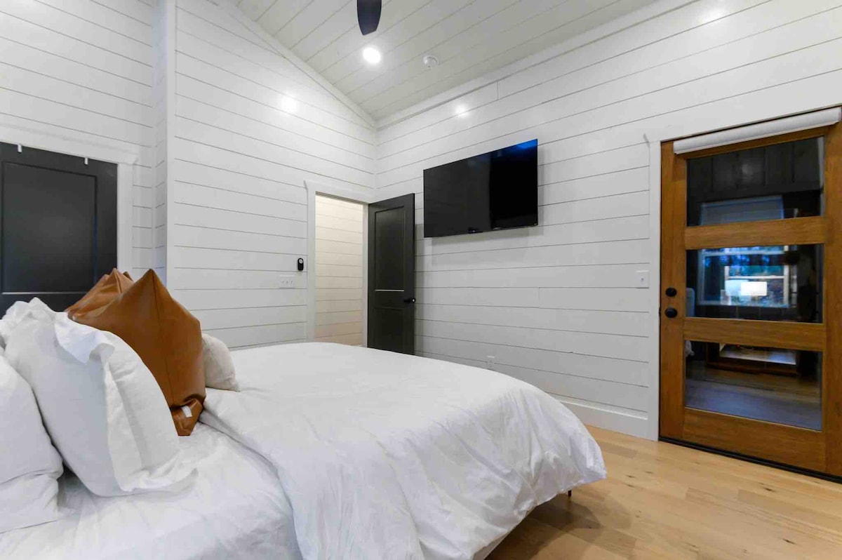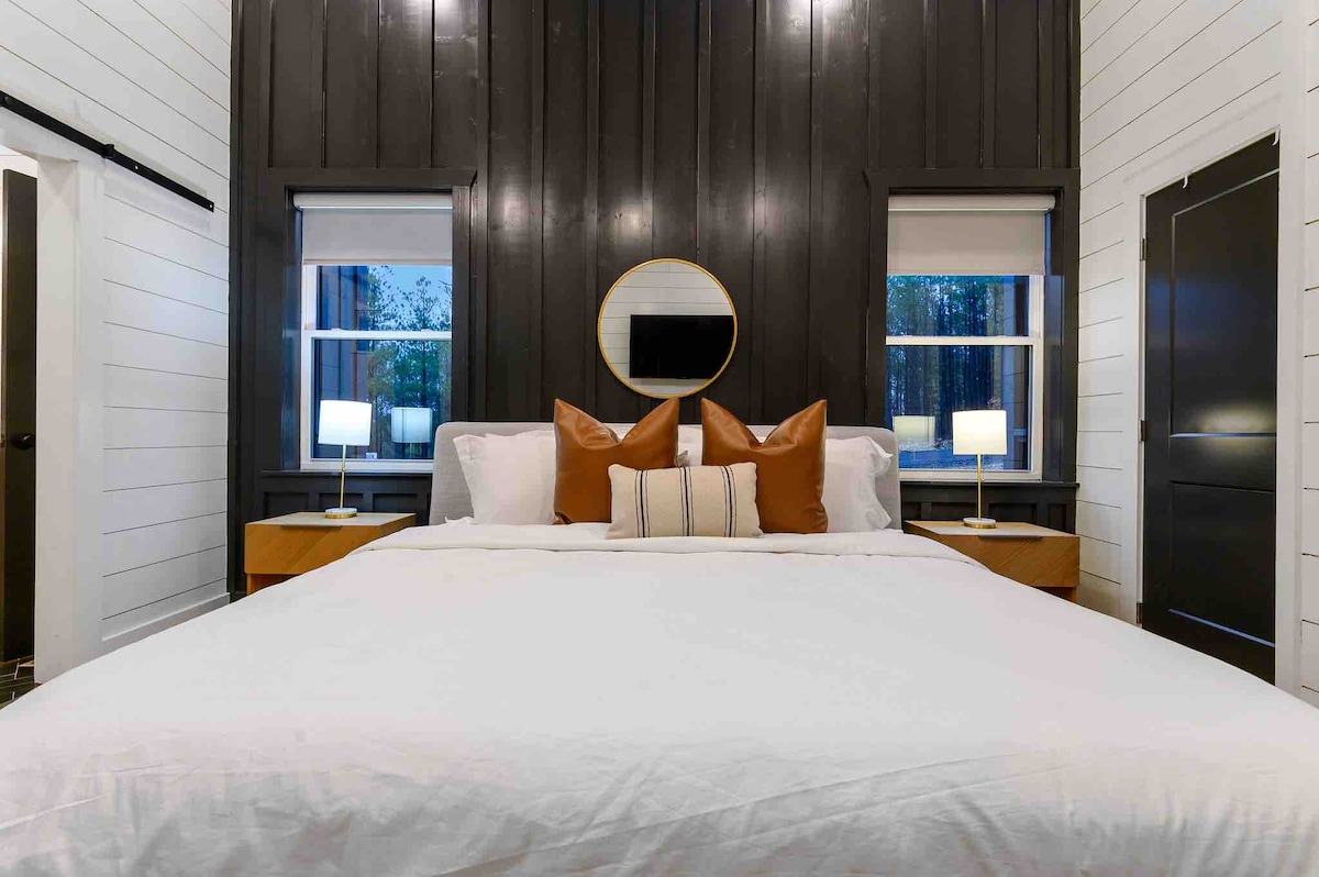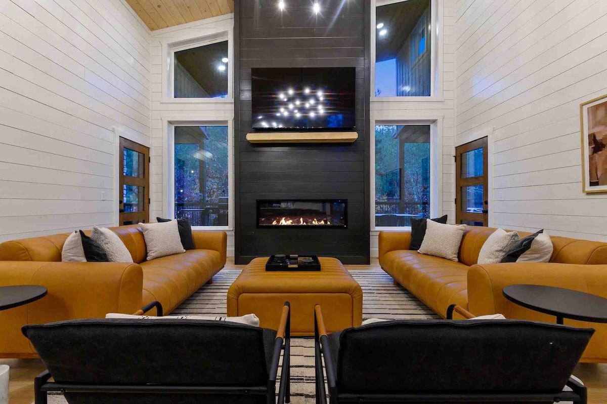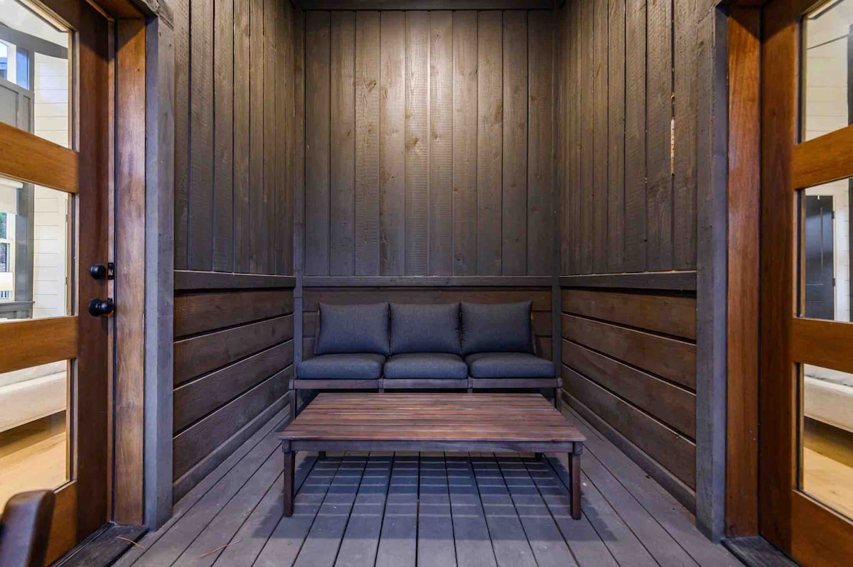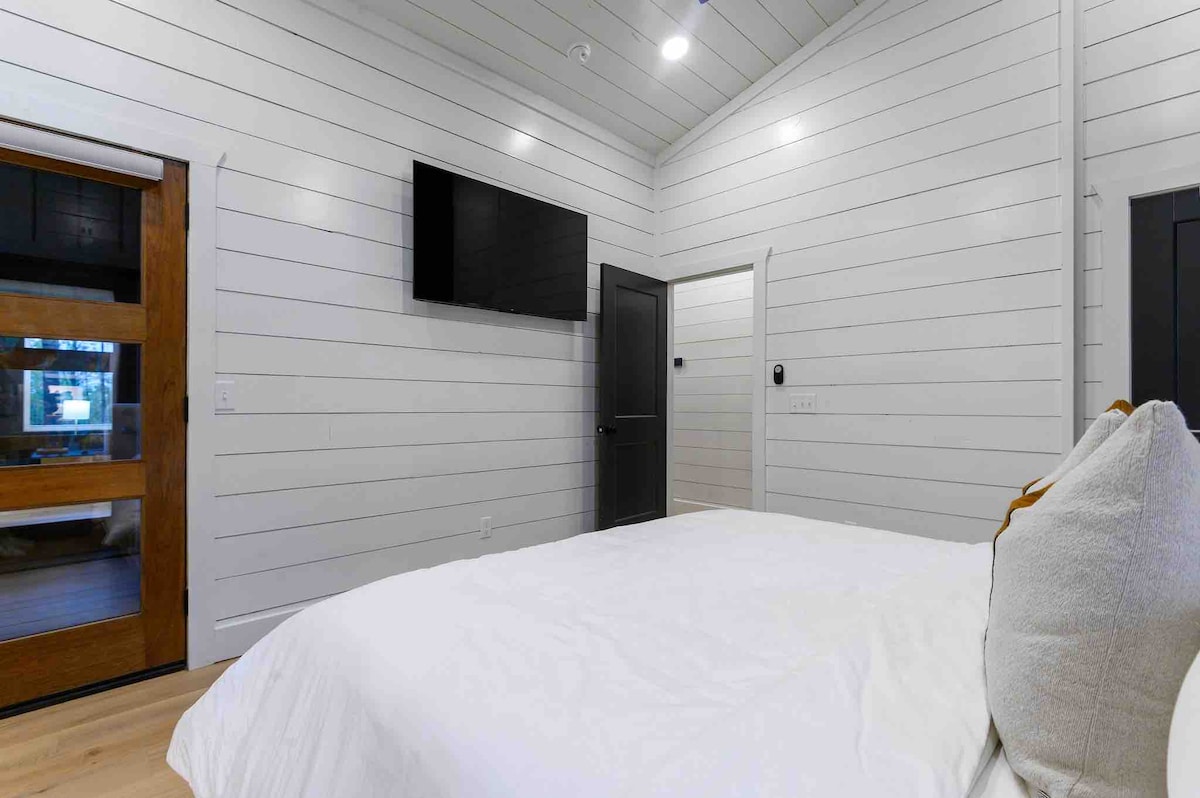 The spaceUpon entering this NEW, modern, and high-end furnished cabin, you'll be greeted by expansive windows framing breathtaking views. Step onto one of two decks to savor the scenery. Gather around the exquisite live-edge acacia wood dining table, perfect for creating unforgettable memories with seating for up to 10. Venture down to the fire pit for s'mores and creek-side fun