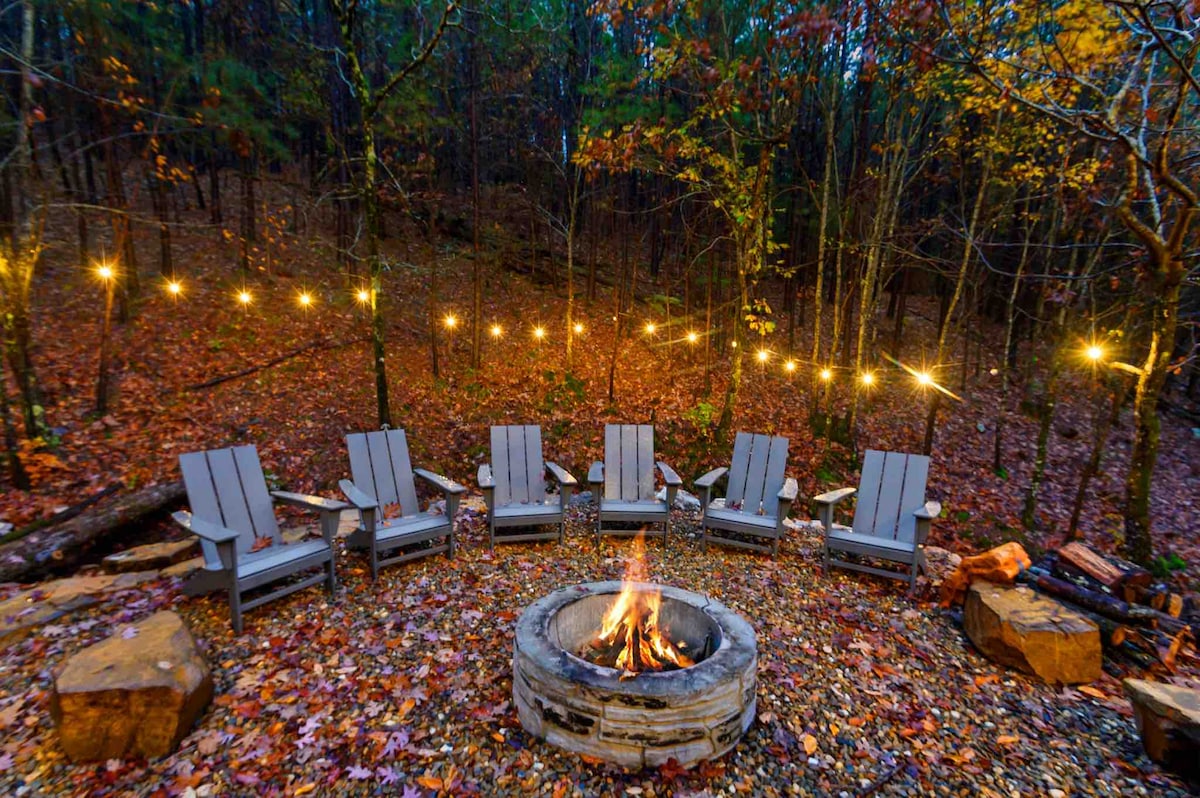 ✹ Please note that Relax & Ravine is in a forested area, The Oklahoma Forestry Service sometimes enforces a burn ban in the area. Fines can be upwards of $1,000. Please check online for the current burn-ban status before using the outdoor fire pit. No refunds will be given due burn ban active.